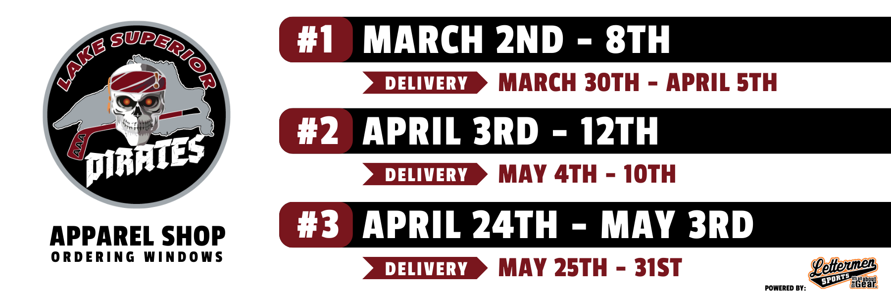 Delivery/Shipping: Orders will be delivered to your apparel coordinators who will organize a local pick-up. You will receive a notification from them with pick-up information when your order is ready.