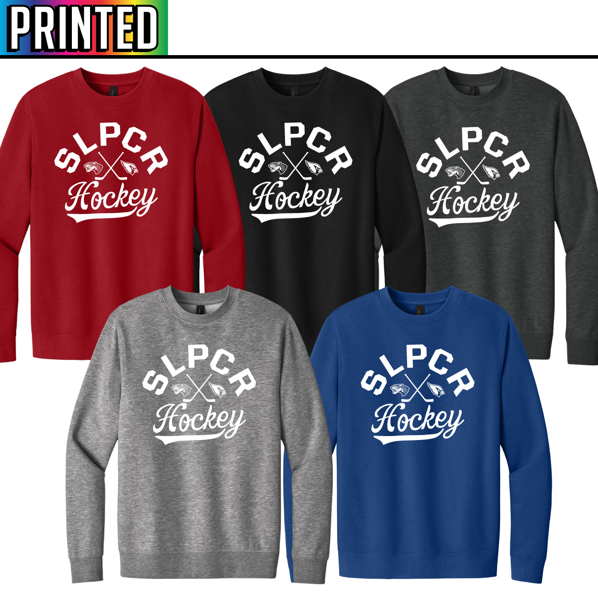 - 60/40 ring spun cotton/polyester (Heathers and Royal Frost)